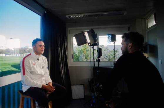 En una hora más venía Keylor, así que ordenamos el espacio, bastante agradable, tipo mini set de TV. Dos sillas, focos de luces, micrófonos listos. Al cabo del tiempo acordado apareció, para mí, el mejor portero, no solo de hoy sino de la historia del fútbol centroamericano.