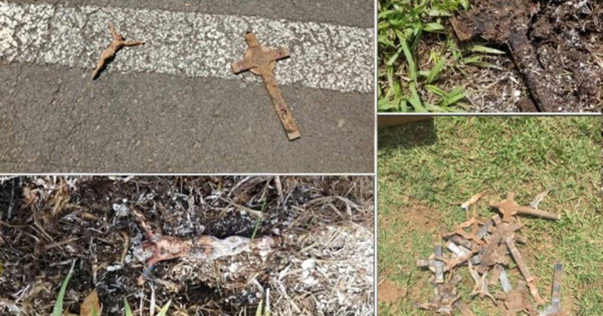 Todos los crucifijos tenían al Cristo cabeza abajo o seperados de la cruz, esto ha causando bastante revuelo en el país hermano.