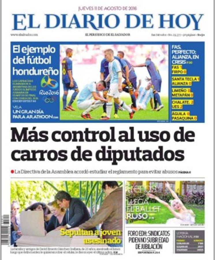 Dicho medio cuscatleco resaltó en su portada lo hecho por los de Pinto con una imagen del festejo y la leyenda “El ejemplo hondureño”.