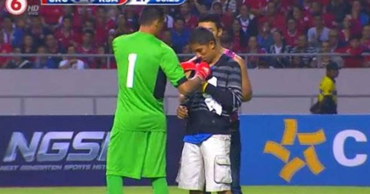 Corría el minuto 85 del partido cuando dos jóvenes saltaron al campo sin que los efectivos de seguridad se percataran y llegaron casi hasta media cancha, donde Navas se encontraba viendo una jugada ofensiva de su selección.