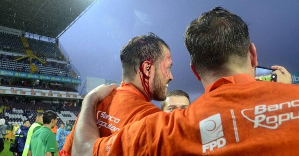 Lastimosamente el guardamera Daniel Cambronero fue impactado por una de las piedras que le provocó una herida en su rostro.
