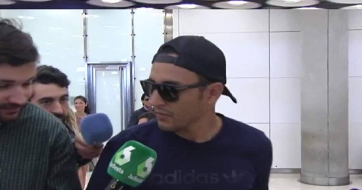 El guardameta blanco ha optado por seguir de largo ante los reporteros, saludando cortésmente y transitando rápido por Barajas.