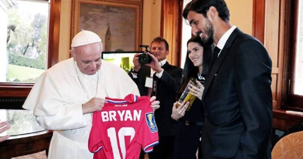 BRYAN RUIZ ANTERIORMENTE LE REGALÓ SU CAMISA DE LA SELECCIÓN AL PAPA