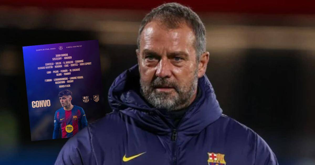 El técnico Hansi Flick citó a 23 futbolistas y sigue sin recuperar a Frenkie de Jong en la medular. Una baja que se mantiene respecto al duelo del pasado sábado en el Metropolitano junto a las de Raphinha y Christensen.
