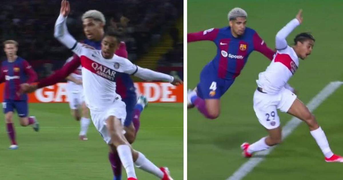 Barcola iba directo al arco en una clara ocasión de gol y Araújo hizo contacto con él. El árbitro no dudó en mandarlo a las duchas.