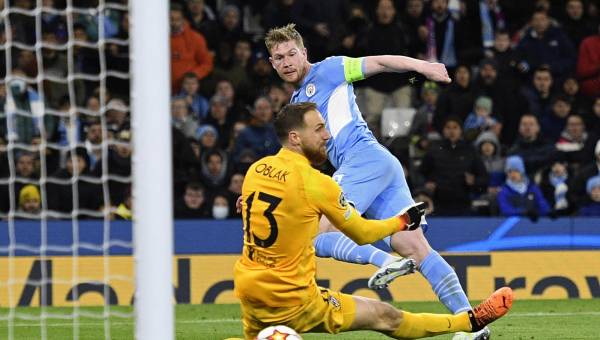 Un gol de Kevin de Bruyne (70) puso en ventaja al City de cara a la vuelta en Madrid la próxima semana, tras un partido en el que el Atlético limitó los daños para salir vivo de Mánchester.