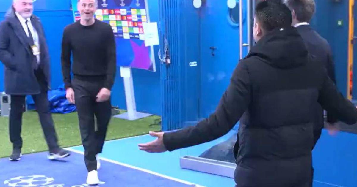 Y es que Luis Enrique y Xavi se encontraron en los pasillos del Parque de los Príncipes y se dieron un fuerte abrazo, entre risas.