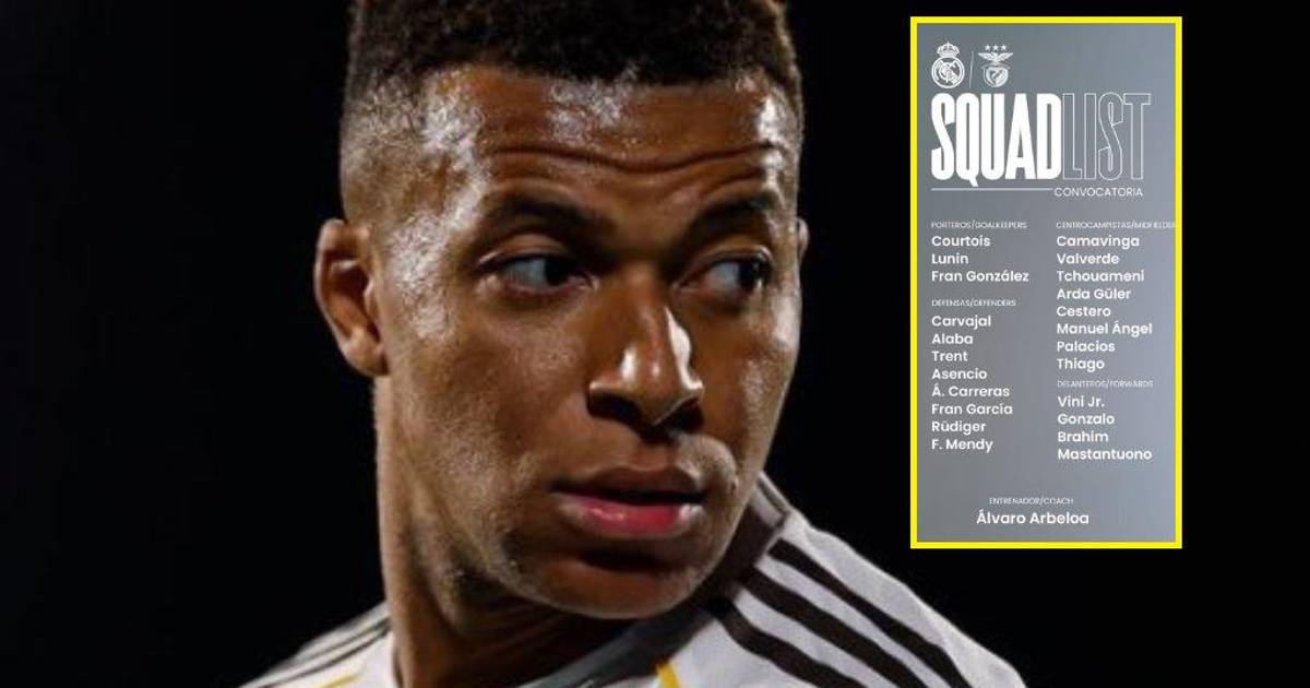 El francés Kylian Mbappé no ha entrado en la convocatoria del Real Madrid para el partido de vuelta de la eliminatoria de acceso a octavos de final de la Liga de Campeones, por las molestias que arrastra en la rodilla izquierda que le obligan a parar, en un partido ante el Benfica en el que también son baja Dean Huijsen, Jude Bellingham, Éder Militao y Dani Ceballos por lesión, más Rodrygo por sanción.