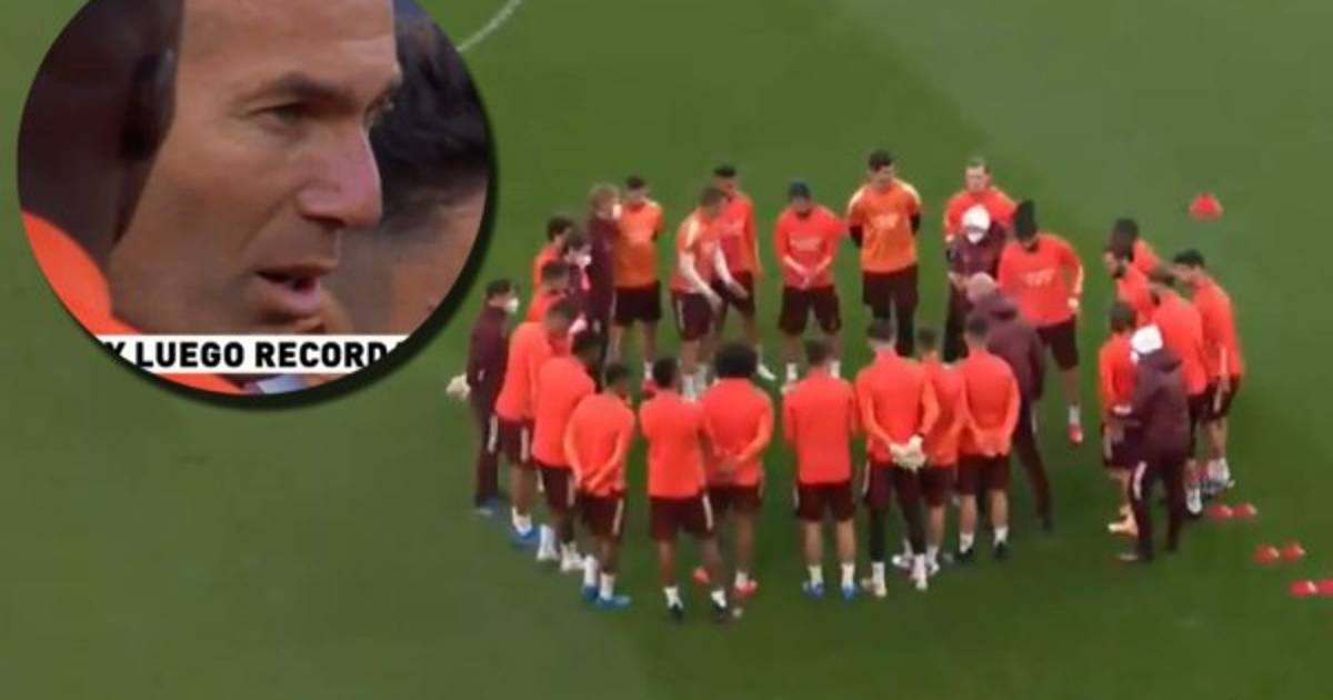 El conjunto blanco hizo el reconocimiento de cancha el martes y las cámaras de 'El Chiringuito' captaron la charla que Zidane le dio a sus jugadores justo antes de iniciar el entrenamiento.