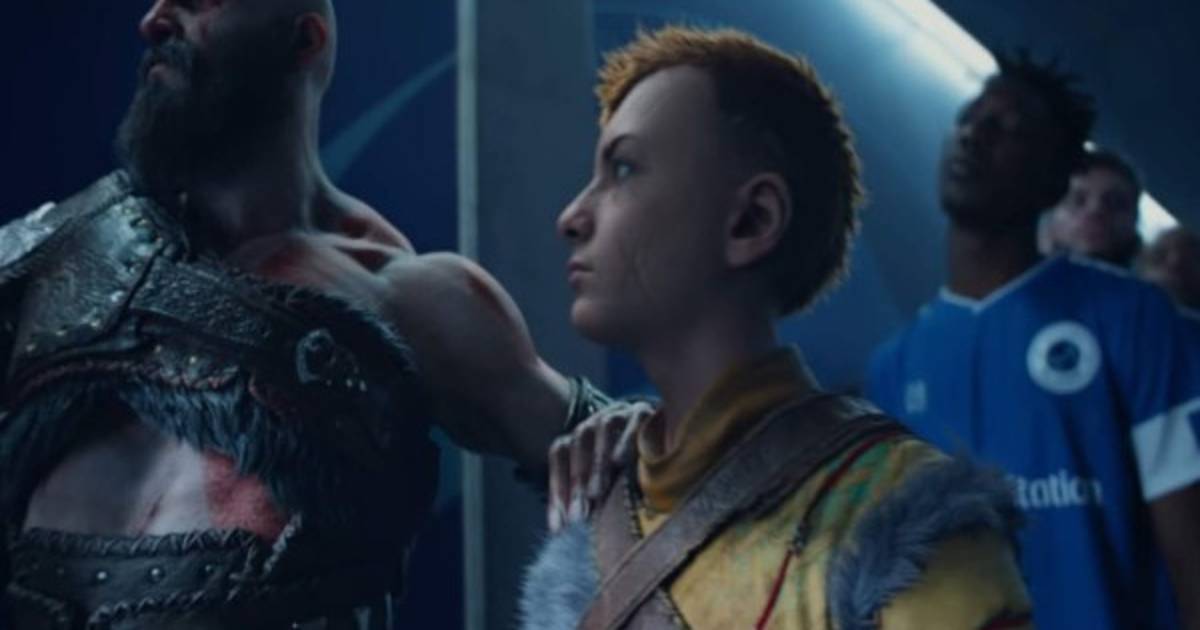 El anuncio inicia con un gancho que, valga la redundancia, se engancha a un punto elevado del estadio. Luego vemos a Kratos y Atreus, protagonistas de God of War, formados y listos para salir a la cancha. También está Aloy, protagonista de Horizon Zero Dawn que, con la tecnología de su foco, ayuda al entrenador del equipo a revisar sus tácticas.