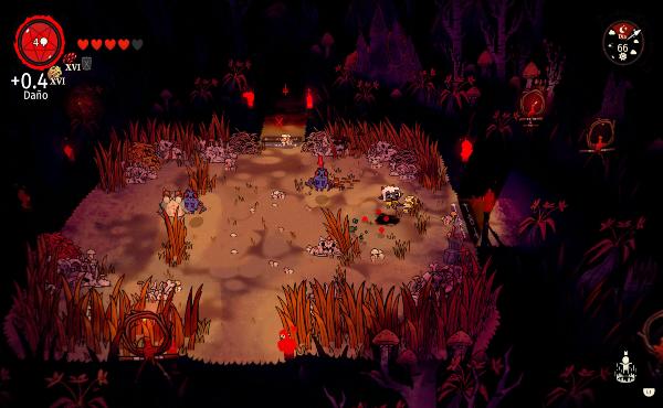 Iremos avanzando limpiando las zonas de enemigos para avanzar a la siguiente, y así sucesivamente hasta alcanzar a la zona donde se encuentra el jefe del área. A lo largo de cada zona, nos encontraremos con varias situaciones que nos pueden beneficiar; encontraremos con un extraño personaje que nos ofrece cartas del tarot (que nos dan ventajas jugables), una araña que nos venderá adeptos, o podremos encontrar animalitos en peligro que podremos reclutar, encontraremos armas, comida y recursos para nuestra secta, entre muchas otras cosas.