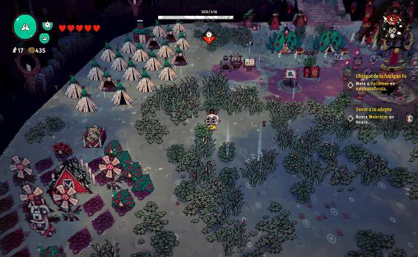Una vez que derrotamos al jefe, podemos regresar a nuestra secta con todos los recursos y las monedas que hemos obtenido. Nuestra guarida es un área muy amplia en la que podremos construir todo tipo de estructuras y decoraciones, gestionar a nuestros adeptos y hacer cientos de actividades más. Aquí es donde el juego se convierte en un título del género de gestión de recursos.