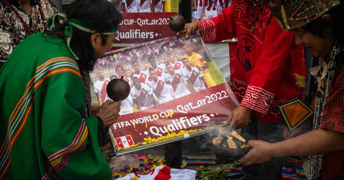 Con espadas y amuletos, cuatro chamanes peruanos hicieron este lunes un conjuro afuera del Estadio Nacional de Lima para anular la eficacia de la selección de Paraguay, que el martes enfrenta a Perú, que aspira a al Repechaje del Mundial de Qatar 2022.