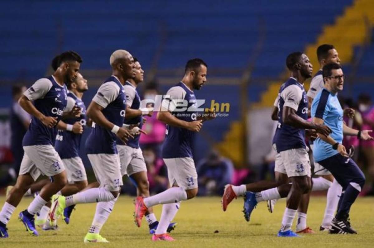 6:30pm Los jugadores de Honduras realizando el calentamiento.