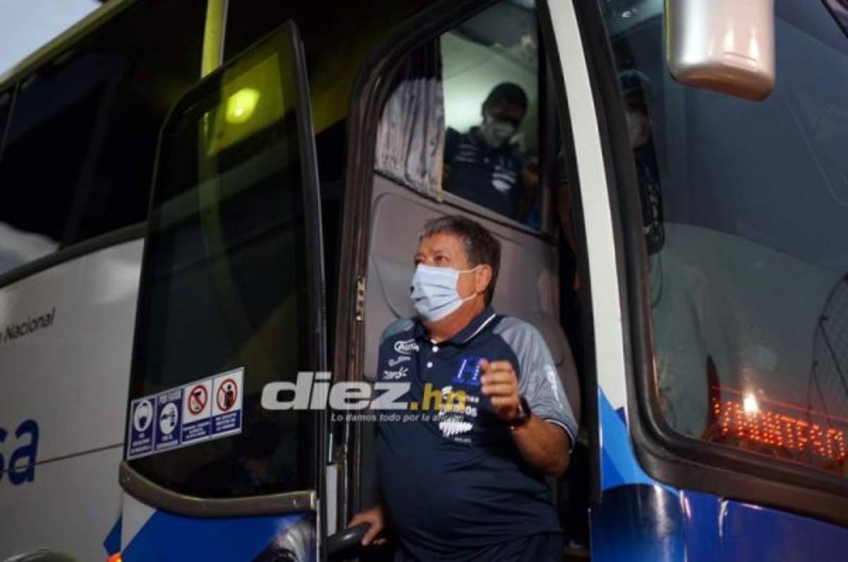 5:45pm El momento en el que Hernán Darío Gómez, técnico de Honduras, descendía del autobús.