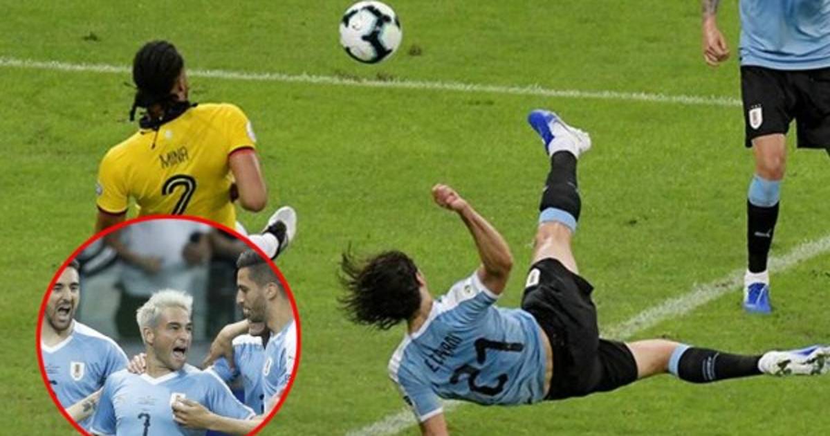 El mediocampista charrúa marcó un auténtico golazo en el estadio Mineirao de Belo Horizonte al realizar una jugada acrobática y definir de zurda con violencia, mientras que Cavani definió de media chilena ante la estéril volada del ecuatoriano Alexander Domínguez.