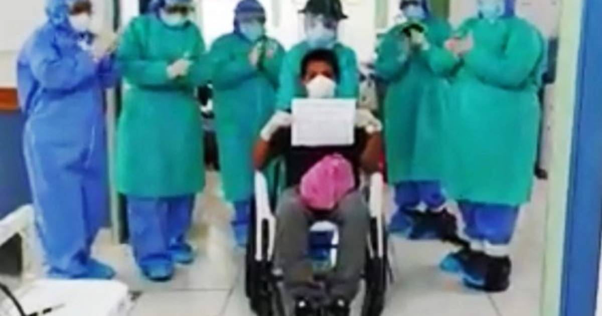 Entre aplausos de los médicos que le hicieron el pasillo, el paciente era conducido en una silla de ruedas por los pasillos del centro hospitalario, emocionado por ganar la batalla.