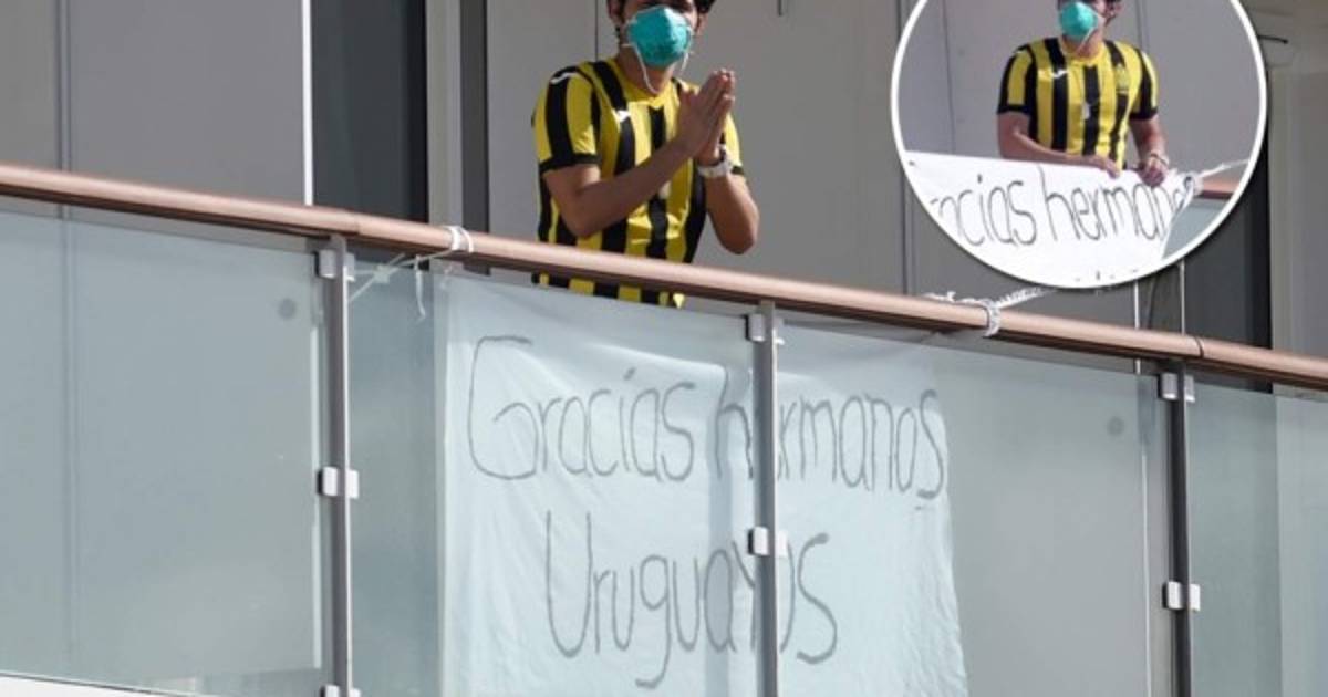 En las redes sociales se hizo viral la imagen de un hondureño vestido con una camisa amarillo y negro con una pancarta agradeciendo a los charrúas porque les permitieron atracar.
