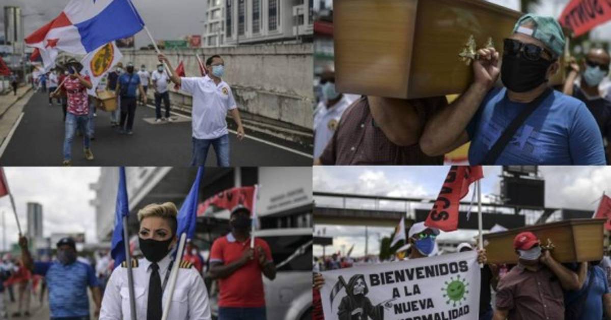 Los convocantes de la protesta frente a la sede del Ministerio de Trabajo y Desarrollo Laboral, en Ciudad de Panamá, pidieron reactivar de manera gradual los diferentes sectores de la economía, manteniendo medidas de confinamiento que frenen la expansión del nuevo coronavirus.