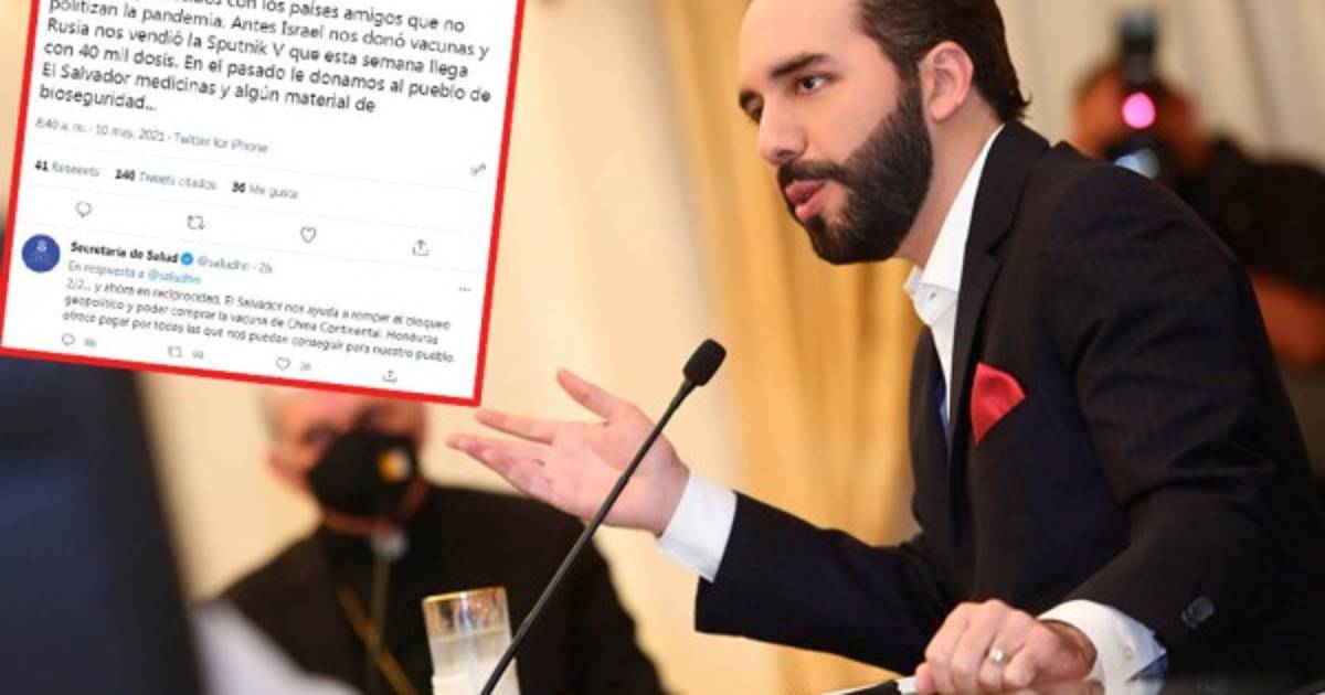 En dos mensajes en redes sociales, la SESAL que preside Alba Consuelo Flores le respondió a Bukele: 'Muy agradecidos con los países amigos que no politizan la pandemia. Antes Israel nos donó vacunas y Rusia nos vendió la Sputnik V que esta semana llega con 40 mil dosis. En el pasado le donamos al pueblo de El Salvador medicinas y algún material de bioseguridad...', dijo en el primer mensaje el gobierno de Honduras.