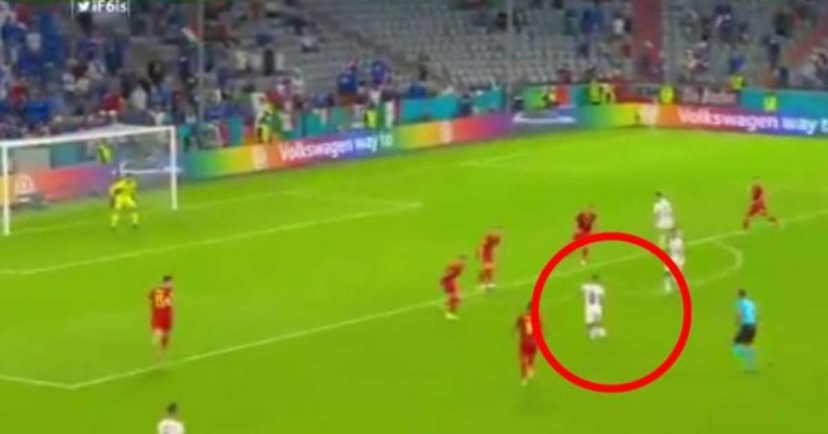 A los 43 minutos de juego, el atacante italiano recibió el balón cerca al medio del campo e inició la carrera. Tras ganar metros, logró sacarse de encima a un futbolista belga, encontró el espacio y sacó un potente disparo para vencer a Thibaut Courtois.