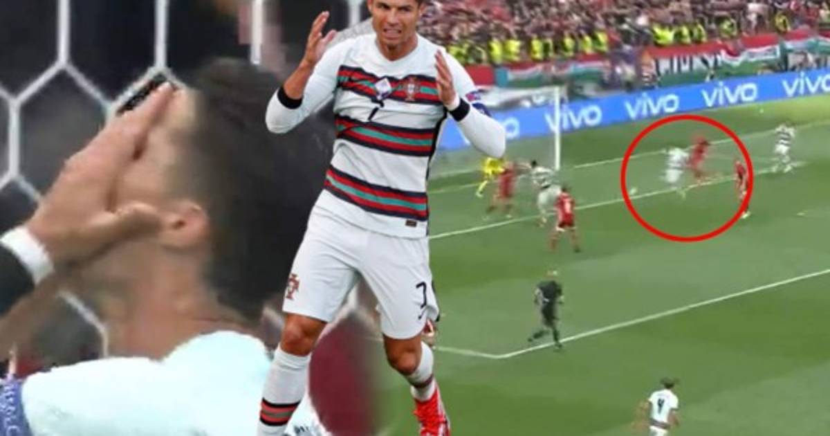 Fue aquí, frente al arco que encontró a Cristianoy este no estaba listo como en otras ocasiones, cuando la tuvo en sus pies, con el portero de frente, CR7 metió su pie derecho y la pateó mal, se fue arriba.