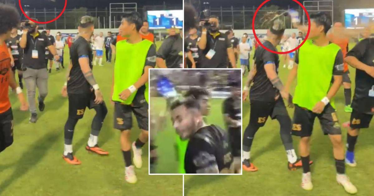 Ricky, uno de los capitanes de El Salvador, intentó retirar a sus campañeros del campo y cuando estaba por hacerlo, recibió un botella en la cabeza que venía dirigido desde la localidad de Preferencia.