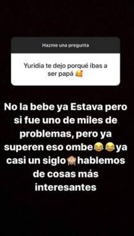 Meses después de esas palabras, el joven defensor de 24 años respondió con una de sus versiones que llevaron al rompimiento ante una de las interrogantes de sus seguidores en su cuenta de Instagram: -'Yuridia te dejó porque ibas a ser papá'-.