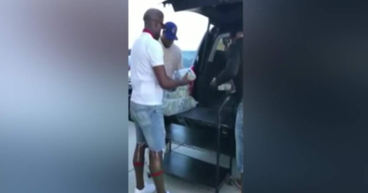 Esta vez el propio boxeador se dejó grabar mientras salía del inmueble junto a tres guardaespaldas con las bolsas llena de dólares en sobre la carreta.