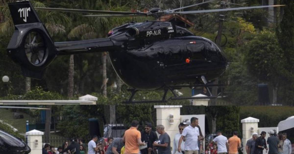 Fiel a su estilo 'bling-bling', el astro del París Saint-Germain llegó al complejo Granja Comary en Teresópolis a bordo de un gran helicóptero negro con las iniciales 'NJR' (para Neymar Junior) valorado en 13 millones de euros, observó un fotógrafo de la AFP.