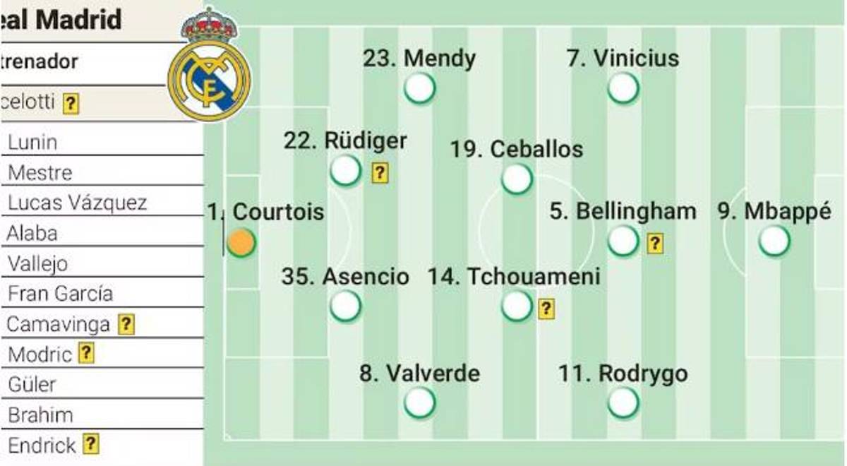 10 / 17Volantes: tras el regreso de Rüdiger, Aurelien Tchouameni arrancaría en el mediocampo del Real Madrid.