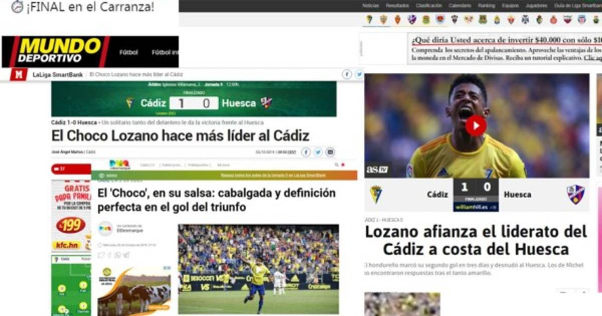 1 / 17Antony 'Choco' Lozano le ha dado el triunfo al Cádiz CF y los medios han destacado su golazo ante el Huesca. Segundo consecutivo en España. -