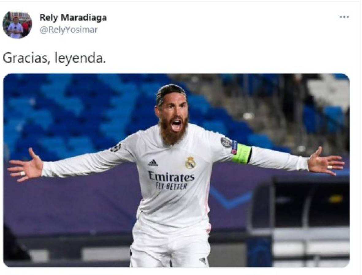 12 / 16Mientras tanto, Rely Maradiaga le agradeció a Ramos por todo lo que hizo en el Real Madrid. ''Gracias, leyenda'', publicó el reportero hondureño con una imagen del defensor celebrando. -