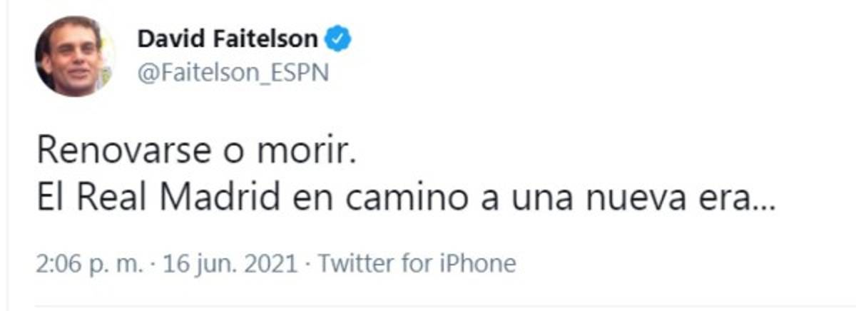 10 / 16El polémico periodista mexicano cerró con un: ''Renovarse o morir. El Real Madrid en camino a una nueva era''. -