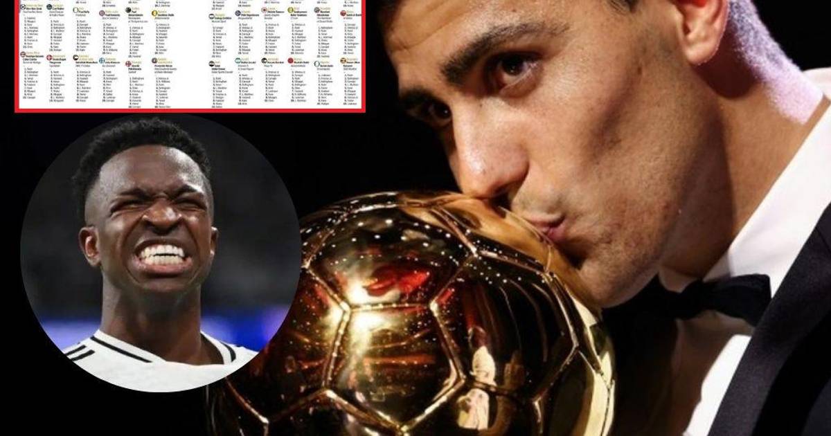 Al descubierto los votos de los 100 periodistas en el Balón de Oro de Rodri y en este puesto puso a Vinicius el de Honduras