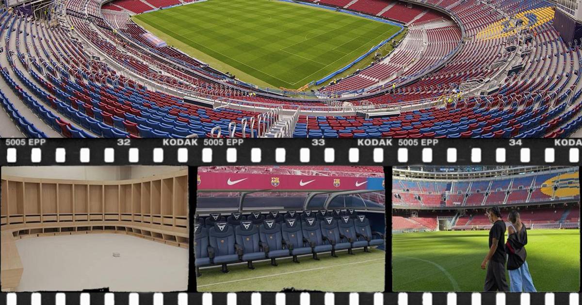 14 / 20Uno de los elementos que más destaca es la visión del terreno de juego, que presenta una alfombra verde impecable, acompañada de unas gradas que ya lucen el mosaico blaugrana y los logotipos de Spotify detrás de las porterías. El brasileño Raphinha y su esposa ya pudieron apreciarlo con sus propios ojos.