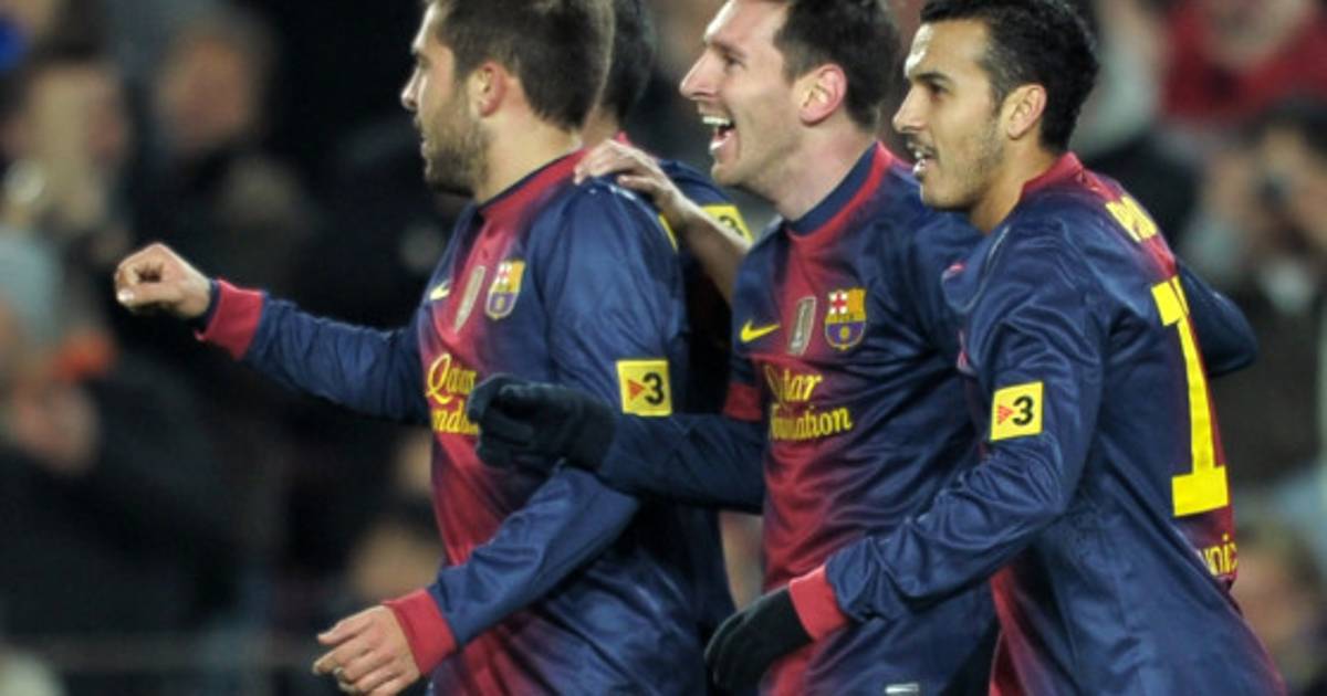 6 / 19Barcelona's players celebrate after scoring during the Spanish league football match FC Barcelona vs Athletic Bilbao at the Camp Nou stadium in Barcelona on December 1, 2012. AFP PHOTO / LLUIS GENE