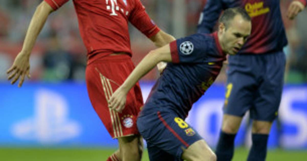 8 / 18Javier Martínez y Andrés Iniesta en acción en el partido Bayern Munich y FC Barcelona. -