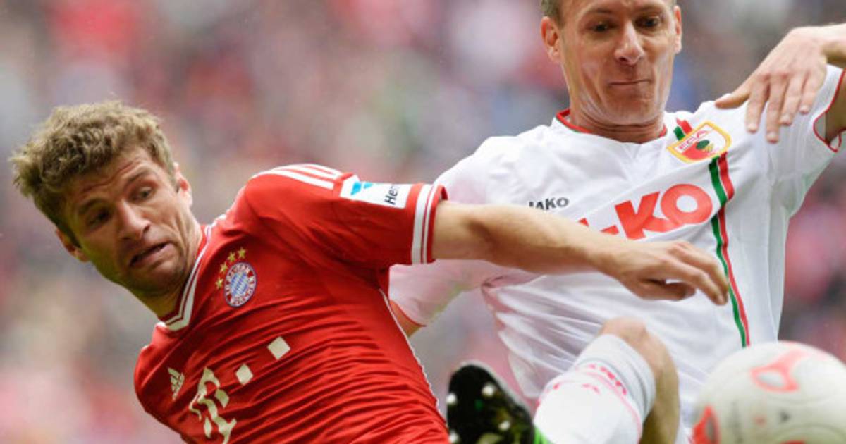 1 / 17El centrocampista Thomas Mueller (iz) y el defensa Dominik Reinhardt de Augsburg compiten por el balón. -