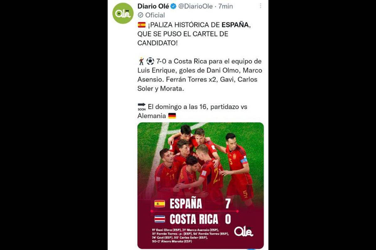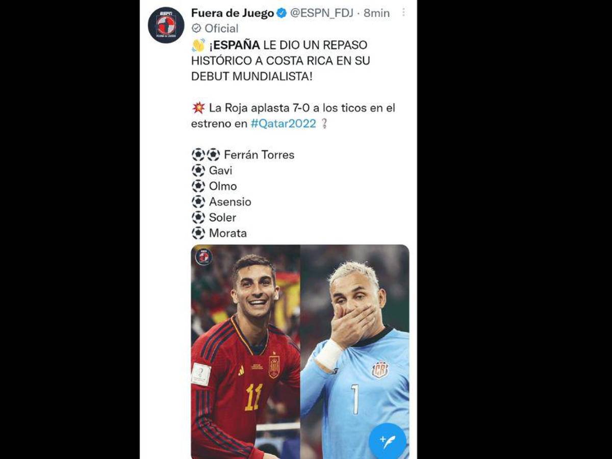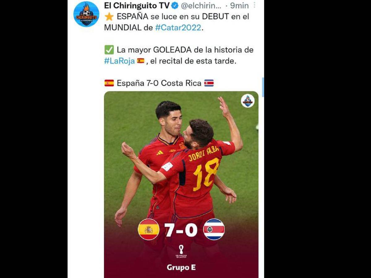 Varios medios de comunicación reaccionaron sorprendidos por el resultado abultado de España ante Costa Rica en el debut del Mundial de Qatar.
