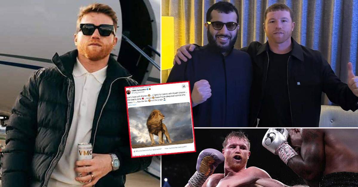 4 / 16“No te metas con el leon. 4 peleas de Canelo con Riad Season. El trato está hecho”, anunció Turki. “A un león no le quita el sueño la opinión de una oveja. Teme al león, no a la jungla”, añadió el jeque árabe.