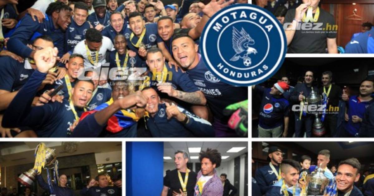 Motagua alzó su Copa número 16 por todo lo alto. El camerino Azul fue una auténtica fiesta después de la entrega del título.