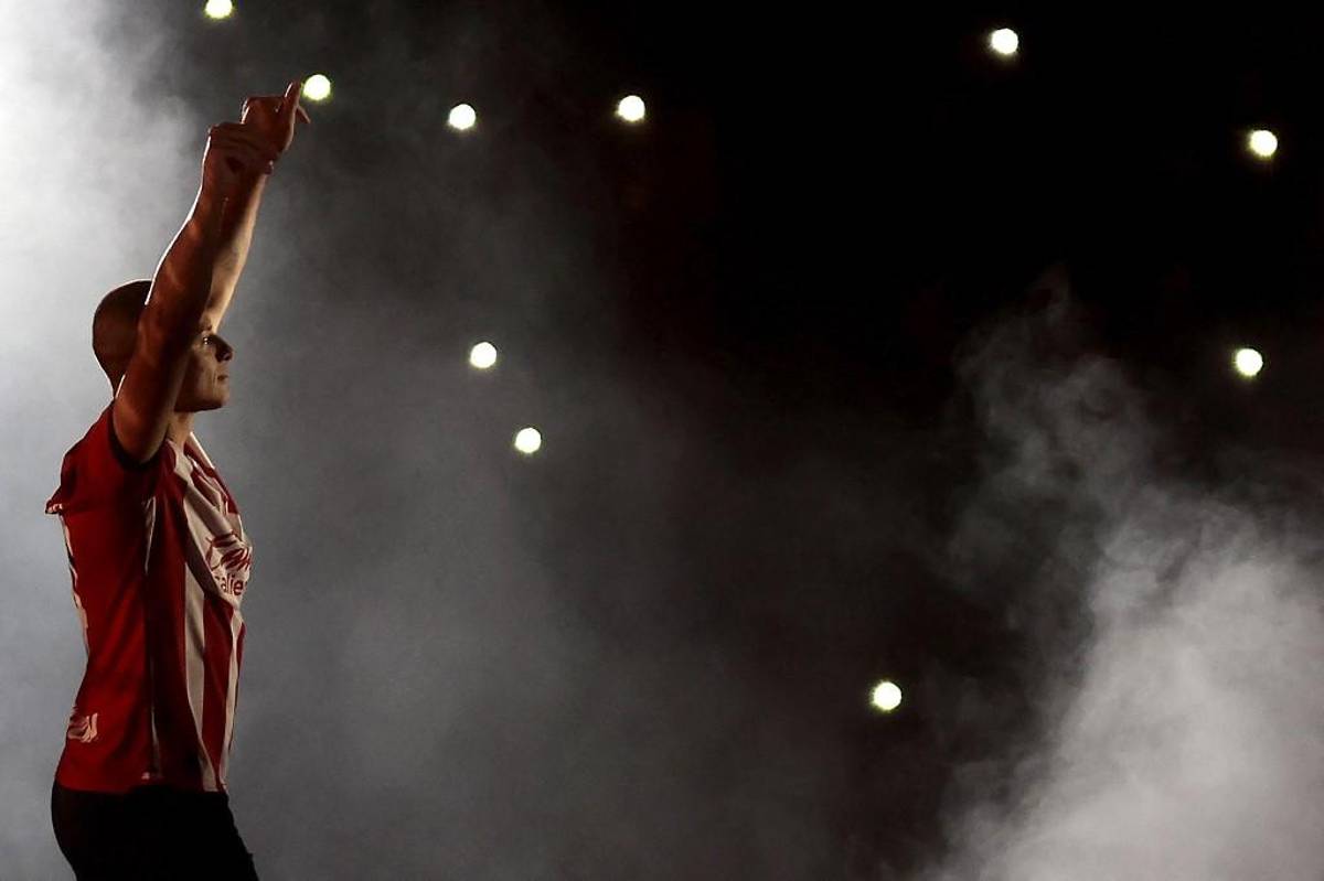 7 / 18Chicharito apareció envuelto en cánticos y ovaciones, y caminando sobre una pasarela adornada con luces y fuegos artificiales. “Chícharo, todos te queremos dar la bienvenida a tu casa”, le dijo Amaury Vergara, para después darle un fuerte abrazo.