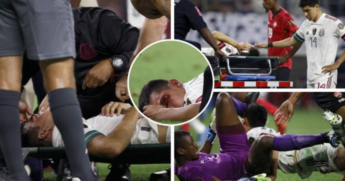 Chucky Lozano encendió las alarmas en la selección de México en su debut en la Copa Oro, luego de sufrir un fuerte choque con el portero de Trinidad y Tobago, Marvin Phillips, quien le pegó con las rodillas en el rostro, teniendo que salir en camilla ensangrentado y usando un collarín. Así quedó el azteca.