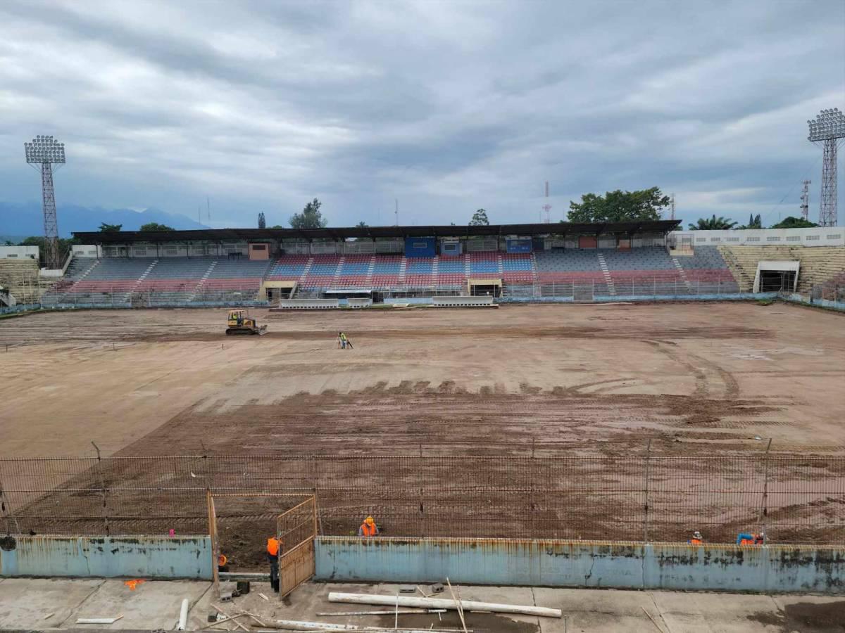 Con pintura y grama nueva: Así avanza la remodelación del Estadio Ceibeño del fútbol hondureño