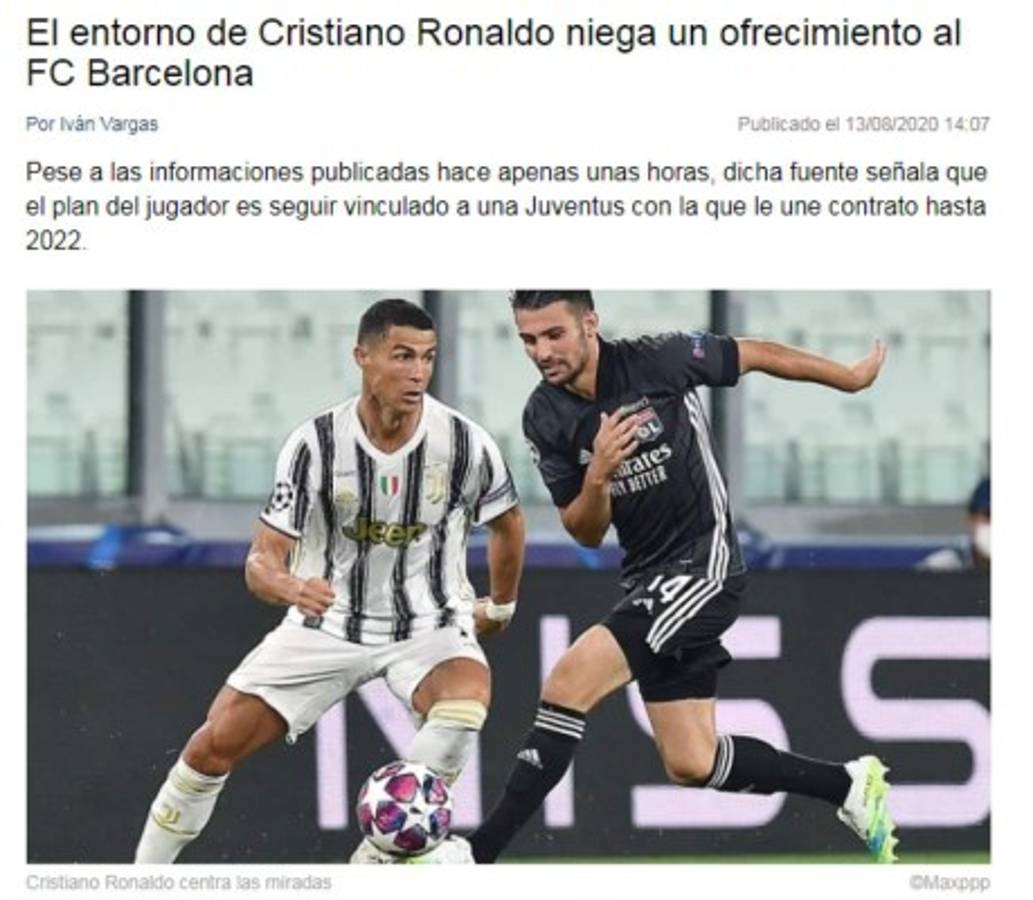 1 / 15Cristiano Ronaldo está siendo el protagonista del mercado de fichajes, según el periodista Guillem Balagué, CR7 fue ofrecido al Barcelona. Esto se desató como la principal noticia de los diarios del mundo y así lo titularon. -