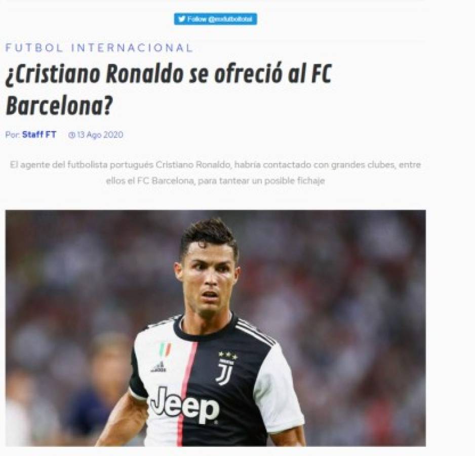 Cristiano Ronaldo está siendo el protagonista del mercado de fichajes, según el periodista Guillem Balagué, CR7 fue ofrecido al Barcelona. Esto se desató como la principal noticia de los diarios del mundo y así lo titularon.