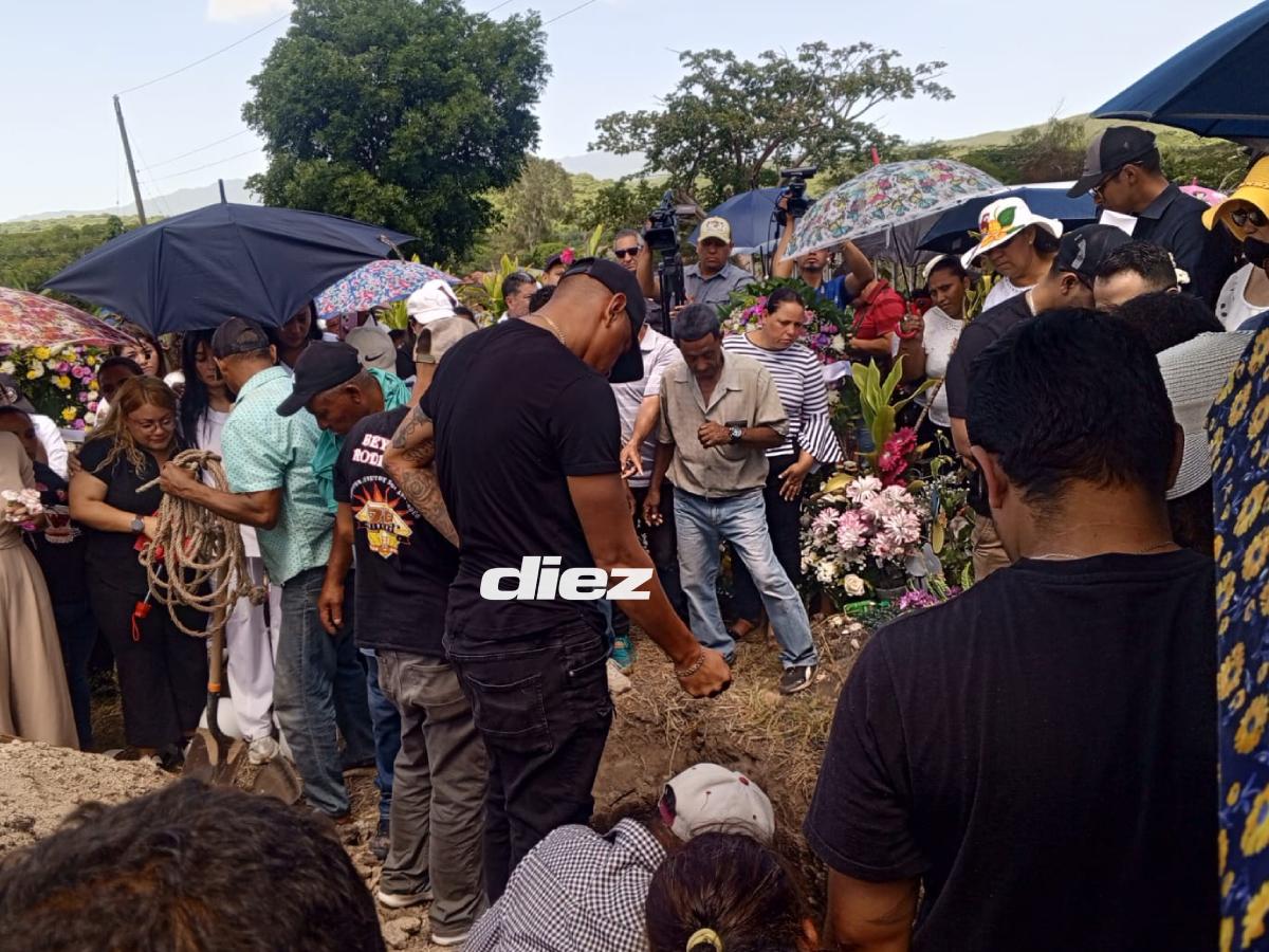 14 / 20Denovan Torres en el momento que lanzaba una flor mientras enterraban el ataúd Mayra Tercero.