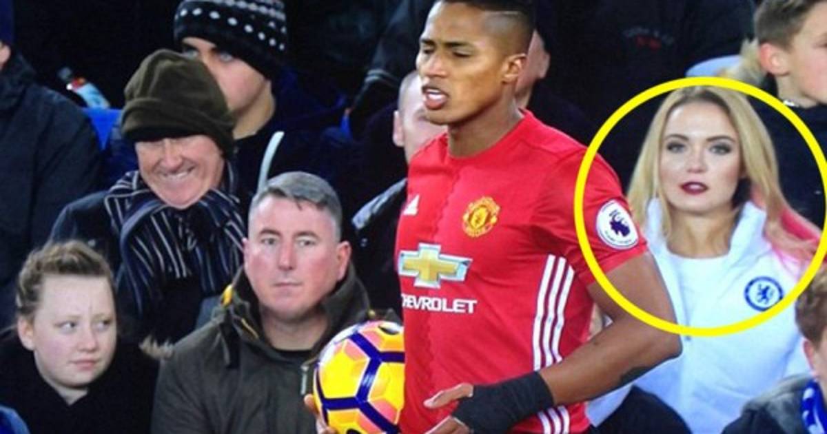 La joven fue a un partido del Manchester United ante el Everton vistiendo la chaqueta del Chelsea.