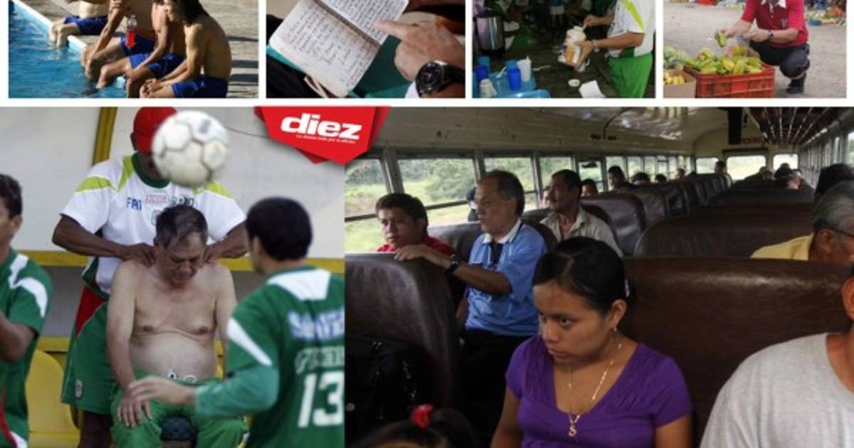 6 / 17El entonces técnico de la Selección de Honduras disfrutando de la piscina junto a sus dirigidos previo a la Copa de Naciones de 2007. -